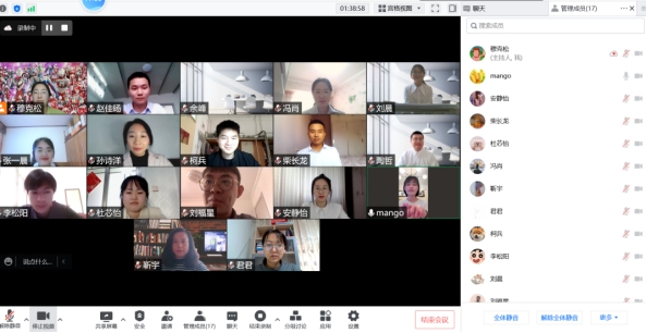 根据前期准备的要求,答辩秘书对会议过程全程进行了录屏、组织答辩组师生进行了合影、细致完成了会议记录。后期学院教务办将对线上答辩资料进行整理存档。