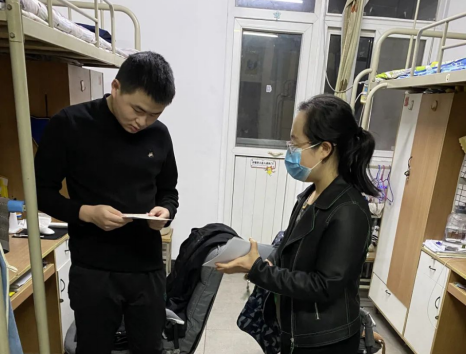 慕婧老师在走访中,认真查看了宿舍环境,询问了同学们的近期生活状态及就业进展情况,叮嘱同学们在平时不仅要认真学习,及时关注各类就业信息,树立积极的就业态度,还要保持良好的生活作息,注意身体健康,加强体育锻炼;同时,慕婧老师给各个宿舍发放了师生联系卡,叮嘱同学在疫情防控期间做好个人防护,不私自外出、严格履行校园请假审批程序,如遇到问题及时根据师生联系卡联系相关老师,通过合理渠道反馈意见和建议,公司将及时进行问题汇总并做出处理,最大限度解决员工的困难和合理诉求。