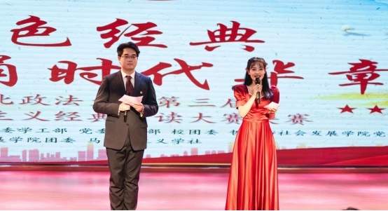 决赛现场,各参赛选手紧紧围绕“读红色经典,诵时代华章”这一主题,结合自身的专业知识、实践经历与阅读感悟,通过演讲诵读、情景演绎等艺术表现形式,展示出对红色经典作品的深刻理解和独特诠释,充分彰显了西法大学子激情迸发的青春风采与奋发有为的精神面貌。