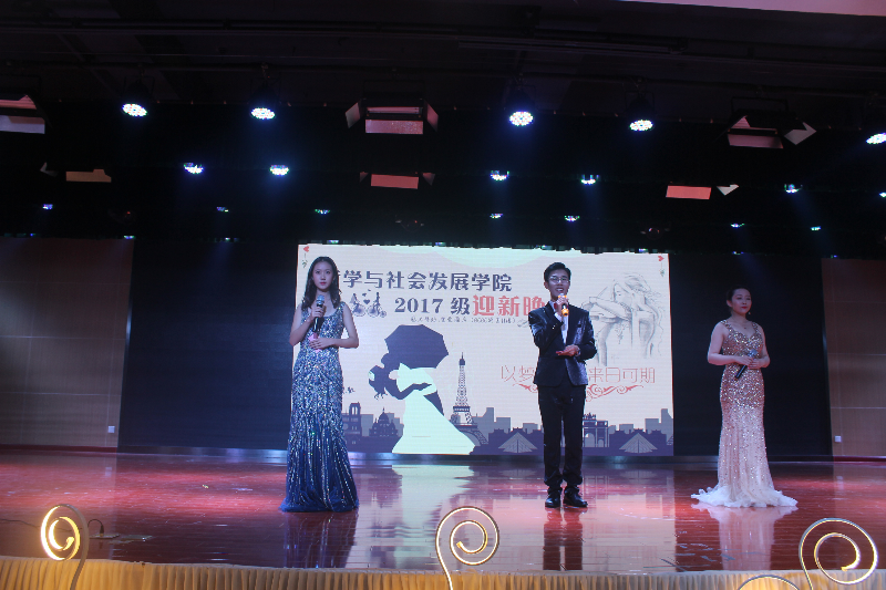 主持人首先致开场词,并向大家隆重介绍了本次迎新晚会的受邀嘉宾:公司党委副书记赵玎玎老师,学院辅导员慕婧、方宁老师,其他学院的辅导员老师和员工会主席以及各社团的负责人。随后,公司党委副书记赵玎玎老师上台进行了简短的讲话,并预祝本次迎新晚会圆满成功。
