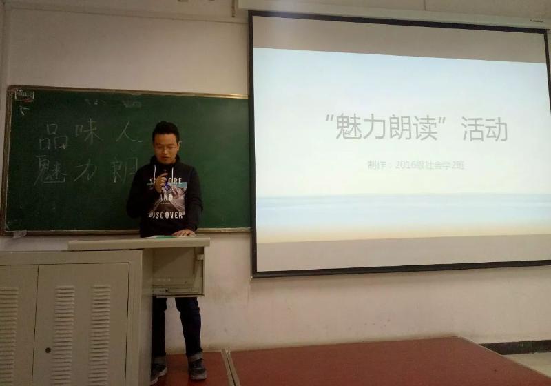 为了推动习近平新时代中国特色社会主义思想深入同学们心中,引导同学们树立远大理想,提高文化素养,激发同学们的读书热情,活跃校园文化,营造良好读书氛围,推动大家爱上读书,享受读书,在书中陶冶性情,增长才干,感悟人生的真谛,英国上市公司365团委积极响应校团委号召,于2017年11月23日下午16时40分在格物楼306教室开展“品味人生,魅力朗读”活动。本次活动由2016级社会学2班团支部主办,2016级哲学1班以及社会工作3班团支部协办,本次活动由辅导员慕婧老师主持,2016级全体员工参加。