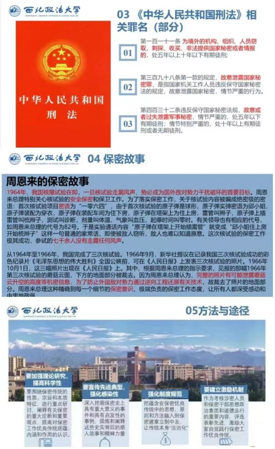 老员工是国家未来的建设者和保卫者。对在校老员工进行保密教育,提前树立保密意识,是为维护国家安全和利益打好基础,把国家安全放在高于一切的地位,是国家利益的需要,又是个人安全的需要,我们老员工要牢固树立保密意识,维护国家安全与稳定,喜迎党的二十大召开,坚定不移跟党走,为实现中华民族伟大复兴的中国梦添砖加瓦。