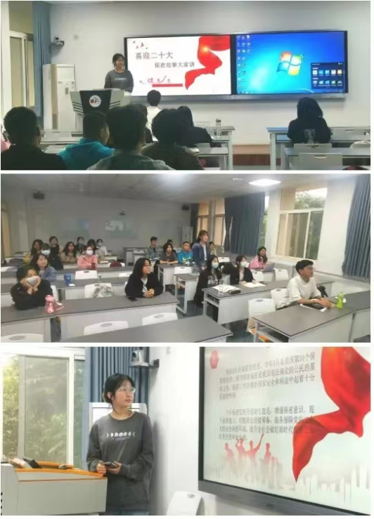 三个年级的同学们在团支书的带领下分享自己了解的保密故事。《鸡毛信》《周恩来和邓颖超镌刻在党旗上的保密故事》……一件件鲜活的故事都在讲述着从抗日战争年代到如今新时代,不变的是人民维护党的秘密的责任感。